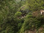 Tungnath is at the top of the ridge dividing the waters of the Mandakini River (raising from Kedarnath) from those of the Alaknanda River (raising above Badrinath). The Tungnath peak on this ridge is the source of three springs, which form the Akashkamini River. The temple lies about 2 km (1.2 mi) below the Chandrashila Peak (3,690 m (12,106 ft)). The road to Chopta is just below this ridge and hence provides the shortest bridle approach path for trekking to the temple from Chopta, over a short distance of about 5 km (3.1 mi). From the top of the Chandrashila peak, picturesque views of the Himalayan range comprising snow peaks of Nanda Devi, Panch Chuli, Banderpoonch, Kedarnath, Chaukhamba and Neelkanth on one side, and the Garhwal valley on the opposite side could be witnessed. The valley between Chopta and Tunganath temple has wooded hills with rich alpine meadows with rhododendron coppices and also agricultural fields. The rhododendrons, when they are in full bloom during March, display dazzling colours ranging from crimson to pink. A high-altitude botanical station of the Garhwal University is located here. Nearing the top of the temple, there is a forest resthouse at Dugalibitta, just opposite to the Kedarnath range of hills. The Kedaranth Wild Life Sanctuary, also called the Kedarnath Musk Deer Sanctuary, set up in 1972 to preserve the endangered musk deer, which lies in the region, also has a musk deer breeding centre at Kharchula Kharak near Chopta.[12][13][14][15]