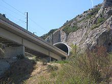 Tunnel boom is a loud boom sometimes generated by high-speed trains when they exit tunnels. These shock waves can disturb nearby residents and damage trains and nearby structures. People perceive this sound similarly to that of a sonic boom from supersonic aircraft. However, unlike a sonic boom, tunnel boom is not caused by trains exceeding the speed of sound. Instead, tunnel boom results from the structure of the tunnel preventing the air around the train from escaping in all directions. As a train passes through a tunnel, it creates compression waves in front of it. These waves coalesce into a shock wave that generates a loud boom when it reaches the tunnel exit.[6][7] The strength of this wave is proportional to the cube of the train's speed, so the effect is much more pronounced with faster trains.[7]