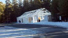The Tuolumne Meadows area is served by the Tioga Pass Road (California SR 120), which had been paved by the 1920s. Its present route through the meadows was laid out in the 1930s by the Civilian Conservation Corps. A housing area for seasonal employees was relocated at that time, whose new site includes a surviving collection of fine National Park Service rustic CCC-built structures listed on the National Register of Historic Places as "Tuolumne Meadows" in 1978.[10][1]