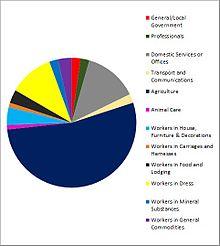 If you compare these 1881 records with 2011 records taken from the last census,[13] there are vast changes in the fields in which people are employed. The most popular form of employment in 2011 was in 'Wholesale and Retail Trade or Repair of Motor Vehicles and Motor Cycles' with 16.2% of the 160 strong workforce working in this sector. In contrast, the most popular sector in 1881 (Agriculture), only employed 5 people (or 3.1%) in 2011, then known as 'Agriculture, Foresting and Fishing'. However, the biggest difference in employment across this time frame is that now transport is widely accessible, many more people can work outside of Tur Langton. It is quite likely that the majority or all of the 90 people surveyed in the 1881 records worked within Tur Langton.