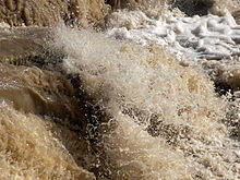 Turbidity in open water may be caused by growth of phytoplankton. Human activities that disturb land, such as construction, mining and agriculture, can lead to high sediment levels entering water bodies during rain storms due to storm water runoff. Areas prone to high bank erosion rates as well as urbanized areas also contribute large amounts of turbidity to nearby waters, through stormwater pollution from paved surfaces such as roads, bridges, parking lots and airports.[2] Some industries such as quarrying, mining and coal recovery can generate very high levels of turbidity from colloidal rock particles.