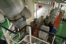 The first commercial application of a turbocharger was in 1925, when Alfred Büchi successfully installed turbochargers on ten-cylinder diesel engines, increasing the power output from 1,300 to 1,860 kilowatts (1,750 to 2,500 hp).[12][13][14] This engine was used by the German Ministry of Transport for two large passenger ships called the "Preussen" and "Hansestadt Danzig". The design was licensed to several manufacturers and turbochargers began to be used in marine, railcar and large stationary applications.[10]