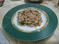 Especially in the western parts of Turkey, where olive trees grow abundantly, olive oil is the major type of oil used for cooking.[4] The cuisines of the Aegean, Marmara and Mediterranean regions are rich in vegetables, herbs, and fish. Central Anatolia has many famous specialties, such as keşkek, mantı (especially from Kayseri) and gözleme. Food names directly cognate with mantı are found also in Chinese (mantou or steamed bun) and Korean cuisine (mandu). In fact, origin of Turkish mantı comes from Chinese mantou.