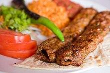 A specialty's name sometimes includes that of a city or region, either in or outside of Turkey, and may refer to the specific technique or ingredients used in that area. For example, the difference between Urfa kebap and Adana kebap is the thickness of the skewer and the amount of hot pepper that the kebab contains. Urfa kebap is less spicy and thicker than Adana kebap. Although meat-based foods such as kebabs are the mainstay in Turkish cuisine as presented in foreign countries, native Turkish meals largely center around rice, vegetables, and bread.
