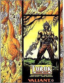 Turok is a fictional character who first appeared in American comic books published by Western Publishing through licensee Dell Comics. He first appeared in Four Color Comics #596 (October/November 1954).[1] After a second Four Color appearance (#656 October 1955), the character graduated to his own title – Turok, Son of Stone (#3 March–May 1956) — published by both Dell and then Gold Key Comics from 1956 to 1982. Subsequently, he appeared in titles published by Valiant Comics, Dark Horse Comics and Dynamite Comics.