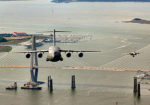 C-5 Galaxy; C-17 Globemaster III; C-130 Hercules; C-141 Starlifter; KC-10 Extender; KC-135 Stratotanker.
