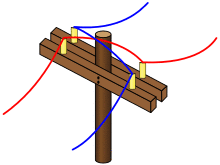As electrical power distribution became more commonplace, this measure proved inadequate. Two wires, strung on either side of cross bars on utility poles, shared the route with electrical power lines. Within a few years, the growing use of electricity again brought an increase of interference, so engineers devised a method called wire transposition, to cancel out the interference.