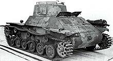 The Type 2 Ke-To was based on the Type 98 Ke-Ni, using the same engine and bell crank suspension.[5] However, the gun turret was enlarged to provide greater space for the crewmen and the main armament was changed to the more powerful Type 1 37 mm gun,[5] with a muzzle velocity of 800 m/s.[3][6] The new 37 mm gun used gave the tank "slightly better performance".[5] The conical turret also carried a 7.7 mm machine-gun in a coaxial mount.[7] The designation "Type 2" represented the Japanese Imperial Year 2602 (1942 AD), "Ke" represented "light", and "To" represented the number seven.[3][8]