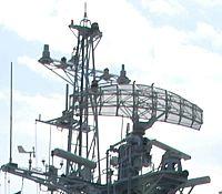 - Separate IFF antenna (4 × yagi) installed on top of antenna.