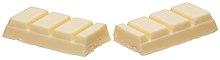 - White chocolate is made of sugar, milk, and cocoa butter, without the cocoa solids. It is pale ivory coloured, and lacks many of the compounds found in milk and dark chocolates. It remains solid at room temperature as that is below the melting point of cocoa butter.