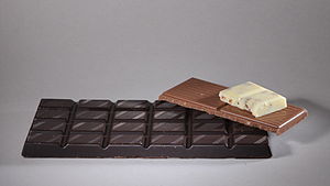 - Dark chocolate, also known as "plain chocolate", is produced using a higher percentage of cocoa with all fat content coming from cocoa butter instead of milk, but there are also "dark milk" chocolates and many degrees of hybrids.[4] Dark chocolate can be eaten as is, or used in cooking, for which thicker baking bars, usually with high cocoa percentages ranging from 70% to 100%, are sold. Baking chocolate containing no added sugar may be labeled "unsweetened chocolate".
