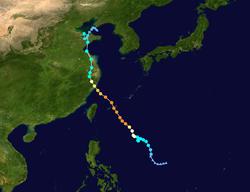 Typhoon Lekima, known in the Philippines as Typhoon Hanna, was the costliest typhoon in Chinese history.[1] The ninth named storm of the 2019 Pacific typhoon season, Lekima originated from a tropical depression that formed east of the Philippines on July 30. It gradually organized, became a tropical storm, and was named on August 4. Lekima intensified under favorable environmental conditions and peaked as a Category 4–equivalent Super typhoon. However, an eyewall replacement cycle caused the typhoon to weaken before it made landfall in Zhejiang late on August 9, as a Category 2–equivalent typhoon. Lekima weakened subsequently while moving across Eastern China, and made its second landfall in Shandong on August 11.