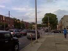 US 1 leaves the District of Columbia as Rhode Island Avenue NE and just simply becomes Rhode Island Avenue, a four-lane divided street with parking through a downtown-like commercial area, right after crossing the intersection of Eastern Avenue NE (the MD/DC Line) and entering the city of Mount Rainier in Prince George's County, Maryland. US 1 then meets the intersections of 34th Street and Perry Street at a roundabout (which was finished being constructed during August 2001 replaced the traffic lights originally at this intersection[4]), then continues northeast through a densely populated residential area. The highway leaves Mount Rainier and enters Brentwood, where the highway meets MD 208 (38th Street). US 1 passes through North Brentwood as a four-lane divided highway without parking through a mix of residences and commercial establishments. The median widens as the highway crosses the Northwest Branch Anacostia River and enters the City of Hyattsville. The highway begins to closely parallel CSX's Capital Subdivision and MARC's Camden Line as it reduces to a four-lane undivided highway, passing the District Court of Maryland for Prince George's County building. US 1 curves to the north and the highway's name changes to Baltimore Avenue at Farragut Street, shortly before intersecting US 1 Alternate.