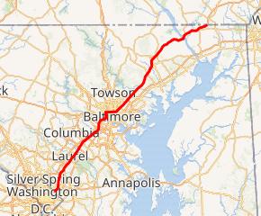 34.94 | 56.23 | ![]() | One-way southbound; northern terminus of MD 2; to Penn Station | ||