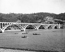 North of Bandon, US 101 heads inland for a while, while a spur route provides access to the Charleston Peninsula. Approaching the city of Coos Bay, US 101 becomes an expressway after an interchange with Oregon Route 42, then soon enters the downtown core. It continues through Coos Bay (the city) along the western edge of Coos Bay (the bay), soon entering the city of North Bend. North of North Bend, it crosses over the bay on the Conde McCullough Memorial Bridge, followed by a second bridge over Haynes Inlet.