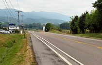 US 11W meets the southern end of SR 31 (Flat Gap Road) in Mooresburg. After crossing Poor Valley Creek, the highway begins to parallel the Holston River to the south and Short Mountain on the north. At Marble Hall, US 11W veers southeast into the valley of Crockett Creek and intersects the northern end of SR 344 (Melinda Ferry Road) on its way to Rogersville, the county seat of Hawkins County. At the western end of town, the U.S. Highway meets SR 66 and SR 70 (Trail of the Lonesome Pine) at an interchange; SR 70 joins US 11W in bypassing the Rogersville Historic District. The two highways meet the northern end of SR 347 (Burton Road) before SR 70 splits north at an interchange. The U.S. Highway briefly parallels Big Creek around Bunker Hill before intersecting the west end of SR 346 (Rogersville Highway), which directly serves Surgoinsville while US 11W passes to the north of the town.[2]