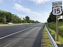 - US 15A is the designation for the 0.04-mile (0.064 km) section of Biggs Ford Road immediately east of its intersection with US 15 north of Frederick.[2][78]