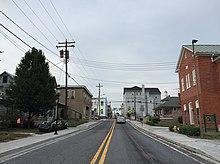 U.S. Route 15 Business (US 15 Business) is a business route of US 15 through Emmitsburg. Known as Seton Avenue, the highway runs 2.34 miles (3.77 km) between junctions with US 15 on the south and north sides of the town.[2] US 15 Business follows the original alignment of US 15 through Emmitsburg. The highway serves the St. Joseph's College and Mother Seton Shrine campuses, which are home to several emergency management institutions and a shrine dedicated to Elizabeth Ann Seton, the first person born in the United States to be canonized by the Roman Catholic Church. The U.S. Highway's bypass of the town was constructed between 1963 and 1965.[50][51] US 15 Business was assigned to the old alignment of US 15 from south of Emmitsburg to the Pennsylvania state line by 1967.[51] The business route became unsigned by 1989 and was truncated at its present northern end by 1999.[62][75]