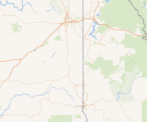 US 195 travels 93.37 miles (150.26 km) north through the Palouse region of Eastern Washington, from the Idaho state line north to Spokane.[2] The highway serves as an important link between Pullman and Spokane as well as part of the Palouse Scenic Byway and a main north–south route in the region alongside State Route 27 (SR 27).[10][11][12] US 195 enters Washington north of Clarkston in unincorporated Whitman County and travels west to an intersection with its 0.61-mile-long (0.98 km) spur route, providing a connection to US 95 northbound towards Moscow. The highway continues northwest through farmland and the towns of Uniontown and Colton along Union Flat Creek towards Pullman.[13][14][15] US 195 intersects SR 27, also part of the Palouse Scenic Byway,[11] and travels west of Pullman on a highway bypass of the city. The bypass travels through the termini of SR 194 and SR 270 as it leaves the Pullman area heading north towards Colfax along the South Fork Palouse River.[16][17] US 195 becomes Main Street within Colfax and travels through the town along a WSDOT rail line to the eastern terminus of SR 272 and SR 26.[18][19] The highway continues north along Pine Creek and the WSDOT rail line past the northern terminus of SR 271, a diamond interchange south of Rosalia,[20][21] before leaving the Palouse Scenic Byway at the Spokane County border.[11][12] The roadway heads north through a diamond interchange in Plaza and along Spangle Creek past the community of Spangle.[22][23][24] US 195 enters the city of Spokane as a four-lane highway along Hangman Creek and ends at a partial cloverleaf interchange with I-90, cosigned with US 2 and US 395.[7][25][26]