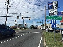 US 360 begins at a four-way intersection on the north side of the Dan River opposite downtown Danville. Main Street heads south across the river into downtown Danville as SR 293 and north as SR 293 and SR 360, the latter highway being the old alignment of US 360 from Danville to east of South Boston. The west leg of the intersection is Riverside Drive, which is followed by US 58 Business. US 360 heads east along four-lane divided River Street with US 58 Business and passes under Norfolk Southern Railway's Danville District rail line. The highway's name changes to South Boston Highway on crossing Fall Creek and veering away from the Dan River. US 360 reaches the eastern end of its concurrency with US 58 Business and joins with US 58 at the highway's cloverleaf interchange with US 29 (Danville Expressway). US 360 and US 58 leave the city of Danville after passing along the north side of Danville Regional Airport.[1][2]