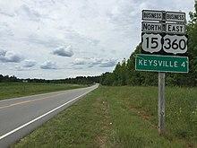 U.S. Route 360 Business (US 360 Business) is a business route of US 360 in Charlotte County. The highway, which runs 5.93 miles (9.54 km) between junctions with US 360 and US 15 south and north of Keysville, is entirely concurrent with US 15 Business.