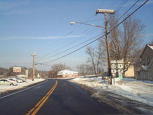 Most of the overlaps were eliminated as time went on. In the early 1940s, NY 32A was reassigned to another highway in the Catskill Mountains while NY 32B was truncated to end in Hudson Falls. The former routing of NY 32A became a realignment of NY 32, creating an uninterrupted overlap between US 4 and NY 32 from Waterford to Northumberland.[21][22] In the mid-1950s, work began on a project to upgrade a pre-existing riverside highway between Bemis Heights and Schuylerville.[23][24] The project was completed by 1958, at which time the roadway became part of a realigned US 4.[25] The overlap with NY 40 was eliminated in the late 1950s when NY 40 was truncated to begin at the junction of US 4 and Winter Street.[25][26]