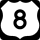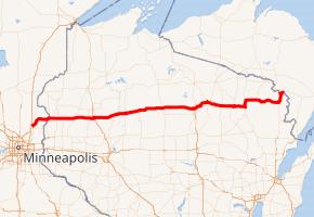 U.S. Highway 8 (US 8) is a United States Numbered Highway that runs primarily east–west for 280 miles (451 km), mostly within the state of Wisconsin. It connects Interstate 35 (I-35) in Forest Lake, Minnesota, to US 2 at Norway in the Upper Peninsula of Michigan near the border with Wisconsin. Except for the short freeway segment near Forest Lake, and sections near the St. Croix River bridge and Rhinelander, Wisconsin, it is mostly undivided surface road. As a state highway in the three states, US 8 is maintained by the Minnesota, Wisconsin and Michigan departments of transportation (MnDOT, WisDOT, MDOT, respectively).