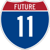US 95 is part of a proposed northwestward extension of Interstate 11 (I-11) from Las Vegas. The interstate highway would primarily follow the US 95 corridor through central and northwestern Nevada, extending to I-80 near Reno and Sparks via Tonopah. In 2018, the Nevada Department of Transportation had initiated public outreach regarding its long-range planning efforts to narrow down options for the future I-11 corridor.[10][11]
