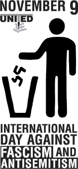 Since 1995, UNITED coordinates an annual pan-European campaign on occasion of the 9 November, called International Day against Fascism and Antisemitism. Hereby, the approach is two-fold: while one part of the campaign aims to commemorate victims of the "Kristallnacht" pogrom and, more broadly, victims of the Holocaust and of fascism throughout history; another part focuses mostly on contemporary issues of racism, antisemitism, right-wing extremism and neo-fascism. The campaign is joined by many different groups with independent actions which are collected by UNITED in an online map available at www.dayagainstfascism.eu.[20]