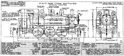 The S100 is a side tank design by Col. Howard G. Hill. In 1942, the USATC ordered 382 S100s from Davenport Locomotive Works of Iowa, H. K. Porter, Inc, of Pittsburgh and Vulcan Iron Works of Wilkes-Barre. They were shipped to Great Britain in 1943, where they were stored until 1944. After D-Day, they were shipped to Continental Europe.