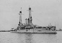 Alabama's next significant action was the cruise of the Great White Fleet around the world, which started with a naval review for President Theodore Roosevelt in Hampton Roads.[2] The cruise of the Great White Fleet was conceived as a way to demonstrate American military power, particularly to Japan. Tensions had begun to rise between the United States and Japan after the latter's victory in the Russo-Japanese War in 1905, particularly over racist opposition to Japanese immigration to the United States. The press in both countries began to call for war, and Roosevelt hoped to use the demonstration of naval might to deter Japanese aggression.[4]