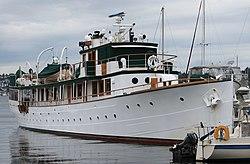 Infanta was designed by Ted Geary and built by the Craig Shipbuilding in Long Beach, California for John Barrymore as a present to his wife, actress Dolores Costello.[2] The keel was laid on 15 September 1929, launched on 16 January 1930 and named in honour of the couple's expected first child, Dee Dee Barrymore.[2] The motor yacht was originally measured as 118 feet in length and with a tonnage of 253 GRT. Power was from two 275bhp Atlas-Imperial diesels driving twin propellers[1][3][4] The Barrymores used the yacht sparingly, due to his preference for the simpler pleasures of his sailboat and his increasing alcoholism.[2] By 18 July 1935 Infanta composed most of Barrymore's net worth, being assessed at $56,350 of his net $56,575.[5] In 1937 the yacht, then valued at $75,000 was auctioned to satisfy a mortgage.[6] The yacht was subsequently renamed Polaris by owners Edward and Kathryn Lowe of San Francisco and home-ported at Juneau, Alaska.[4][7]