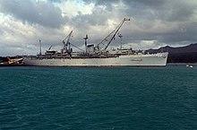 USS Holland (AS-32) was a Hunley class submarine tender launched by the Ingalls Shipbuilding Company in Pascagoula, Mississippi on 19 January 1963. The first ever built specifically to service Fleet Ballistic Missile submarines (SSBNs),[2] she was sponsored by Mrs. John C. Stennis, wife of US Senator John C. Stennis and delivered to the Charleston Naval Shipyard, Charleston, South Carolina. Holland was commissioned on 7 September 1963, with Captain Charles W. "Gin" Styer, Jr. in command.
