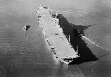Reconnaissance aircraft had located the remnants of the IJN in Kure and Kobe on the 18th and Mitscher ordered TGs 58.1, 58.3 and 58.4 to attack the former port. The Japanese caught Clark's carriers with their decks full of aircraft, preparing to fly off the morning's airstrike, but all of the attack aircraft were shot down; one kamikaze crashed a thousand yards (910 meters) astern of Hornet and two other were splashed by her sister Bennington's gunners. After the airstrikes flew off, further Japanese attacks crippled her sister Franklin.[61] As they approached Kure, the 20 Hellcats of Hornet's Fighter-Bomber Squadron 17 encountered 40 fighters from the IJAAF's elite 434rd Kokutai. In a battle which lasted 25 minutes, six American and four Japanese fighters were shot down.[62] The total casualties from the day's fighting over Japan, including the engagement between VBF-17 and the 434rd Kokutai, was 14 American and 25 Japanese aircraft shot down.[63] The attacks on the warships in Kure were fairly ineffectual, with the American pilots lightly damaging four battleships and many other warships, but badly damaging only a single escort carrier and a light cruiser. Hornet lost 13 aircraft in combat during the day. The afternoon's scheduled airstrikes were canceled to allow TF 58 to protect its damaged ships as they withdrew; further attacks on 20 and 21 March failed to significantly damage any more ships.[64]