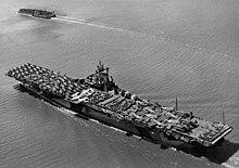The keel for Intrepid was laid down on 1 December 1941 in Shipway 10 at the Newport News Shipbuilding & Dry Dock Co., Newport News, Virginia, days before the Japanese attack on Pearl Harbor and the United States' entrance into World War II. She was launched on 26 April 1943, the fifth Essex-class aircraft carrier to be launched. She was sponsored by the wife of Vice Admiral John H. Hoover. On 16 August 1943, she was commissioned with Captain Thomas L. Sprague in command before heading to the Caribbean for shakedown and training. She thereafter returned to Norfolk, before departing on 3 December, bound for San Francisco. She proceeded on to Pearl Harbor, Hawaii, arriving there on 10 January, where she began preparations to join the rest of the Pacific Fleet for offensive operations against the Imperial Japanese Navy.[1][2]