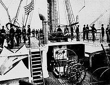 On 19 March 1900, she sailed for Hong Kong to rendezvous with the monitor USS Monadnock on 22 March and convoy that ship to Cavite, arriving on 3 April and staying there until sailing for Yokohama on 24 April, arriving three days later. The ship then hoisted the flag of Rear Admiral Louis Kempff, Assistant-Commander of the Asiatic Station and sailed on 20 May for China to help land reinforcements to relieve the legations under siege by the Boxers at Peking. Arriving Tientsin on 22 May, Newark operated in that port and out of Taku and Chefoo, protecting American interests and aiding the relief expedition under Vice Admiral Edward Hobart Seymour, R.N., until sailing at the end of July for Kure, Japan, and then Cavite where she hoisted the pennant of the Senior Squadron Commander in the Philippines. She sailed for home in mid-April 1901, via Hong Kong, Ceylon and Suez, arriving Boston late July 1901. She decommissioned there on 29 July.[3]