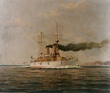 In 1887, Whitney authorized the construction of two coastal defense battleships, that were to become Texas and Maine.[10] The emphasis was still on large and fast commerce-raiding cruisers, capable of destroying an attacking fleet's supply line. President Grover Cleveland was defeated in the election of 1888, but before he left office, Whitney managed to have Congress authorize two additional cruisers, one of which was the large, 5,300 long tons (5,400 t) protected cruiser that was to become Olympia.[11]