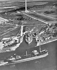 Following overhaul, Texas resumed duty with the Atlantic Fleet early in 1919. On 10 March, she became the first American battleship to launch an airplane when Lieutenant Commander Edward O. McDonnell flew a British-built Sopwith Camel off the warship at Guantanamo Bay.[32] Later in 1919 Texas's captain, Nathan C. Twining, successfully employed naval aircraft to spot the fall of shells during a main battery exercise.[33] The results were that aircraft-borne gunfire spotters were significantly more accurate than shipboard spotters. In testimony to the Navy General Board, Lieutenant Commander Kenneth Whiting attested that the increase in gunfire effectiveness with air spotting was likely to be as great as 200%.[34] As a result of these first experiments, the Navy would add floatplanes to all of the fleet's battleships and newer cruisers.[35] In May 1919, Texas served as a plane guard and navigational aid for the successful attempt by Navy Curtiss NC flying boat NC-4 to become the first airplane to cross the Atlantic.[9] On 26 July 1919 Texas entered the Pacific Ocean as part of the newly formed Pacific Fleet and she would spend the next five and half years as a part of Pacific Fleet.[36] On 17 July the following year, she was designated BB-35 under the Navy's newly adopted alpha-numeric system of hull classification symbols.[10]