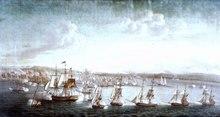 1 August 1805 - Vixen along with the rest of the Rodgers's sixteen-warship squadron arrived to Tunis for a show of force as Bey Hamouda of Tunis was considering to declare war on the United States.[8]