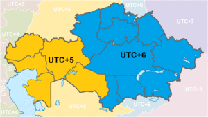 Kazakhstan - Time in Kazakhstan[1] - The provinces of Aktobe, Atyrau, Kyzylorda, Mangystau and West Kazakhstan