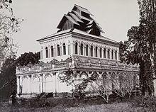 The central importance of the ordination hall in the pre-colonial era is exemplified by the inclusion of an ordination hall, the Maha Pahtan Haw Shwe Ordination Hall (မဟာပဋ္ဌာန်းဟောရွှေသိမ်တော်ကြီး), as one of seven requisite edifices (နန်းတည်သတ္တဌာန) in the founding of Mandalay as a Burmese royal capital.[6][7]