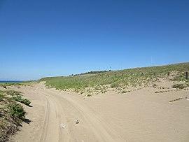 Uchinada became the center of the first large-scale protest movement against one of the US military bases that remained in Japan even after the end of the US Military Occupation of Japan.[4] The movement arose in protest against the construction of an artillery range to train United States Army units during the Korean War.[5] Nationwide sympathy was aroused by the perceived danger to the natural ecosystem of the Uchinada sand dunes.[6] Activists from around Japan joined the protests, and the "Uchinada Incident" helped launch a nationwide anti-base movement.[6][5] Ultimately, the protest movement, which lasted from 1952 to 1953, failed to stop the opening of the range.[4][5] The artillery range opened in March 1953, and was turned over to the Japanese government in 1957.[5]