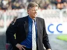 In March 1994, Ukraine paid Israel a visit, but lost the game with a single penalty kick. Next there was a home game against Belarus where Ukraine finally won 3-1 after coming from behind at half-time. Just before their first official international competition game which was scheduled to be played against Lithuania at home, they played couple of away games against Bulgaria and the United Arab Emirates which both ended in a 1–1 draw. Another tour was scheduled right afterwards to Lithuania and Korea, the national coached by Kyivan Anatoliy Byshovets. The opening game on 7 September against Lithuania, considering their last encounter, was expected to end positively, which however resulted in a 0–2 defeat.[11] Both goals were scored within a couple of minutes in the middle of the second half by Hamburger SV striker Valdas Ivanauskas. The national team headed off to Korea without Bazylevych and his assistants whom were Mykola Pavlov and Vladimir Muntyan. Ukraine played two games and lost both. On 20 September 1994, Oleh Bazylevych was highly criticized at the federation's coaching meeting but was to be kept in position at the next meeting of the FFU Executive Committee a few days later.[12] However, the following day Bazylevych resigned accusing Bannikov of being tactless. On 24 September 1994, the Football Federation of Ukraine appointed Yozhef Sabo as an acting head coach until the end of the year.