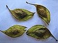 Rarely growing to > 15 m in height, typically < 10 m with a trunk diameter of 30 cm; the tree has exfoliating orangish bark. The ovate leaves are coriaceoeus, < 9.6 cm in length by 4.6 cm broad, acute at the apex, pinnately veined, on short (2–5 mm) petioles; the colour ranges from dull green to light brown. The apetalous flowers are arranged as short racemes on leafless twigs, sparsely clustered on < 7 mm peduncles. The samarae are < 22 × 13 mm, tapering at the base to a <8 mm stalk, with ciliate margins, and are shed during June and July in Mexico;[1] in Honduras and El Salvador the tree flowers at the time of foliage change, just before the fall of the leaves of the previous season during the months of February and March, and fructifies from March to the end of April, coinciding with the emergence of the new season's leaves.[2]