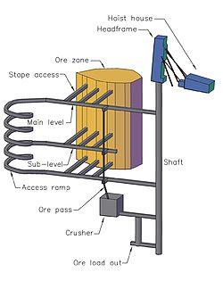 Accessing underground ore can be achieved via a decline (ramp), inclined vertical shaft or adit.