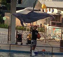 The Dolphin Lagoon was home to several Indo-Pacific humpback dolphins, also known as the "pink dolphins". Several "Meet-the-Dolphins" sessions were held daily that allowed visitors to enter the waist-deep pool and interact closely with the dolphins. The ticket to the Underwater World & dolphin show did not include the direct contact with the dolphins, an additional photo-coupon had to be purchased. The lagoon also included a Dolphin Suite where visitors could watch the dolphin performance from within an air-conditioned area.[1]