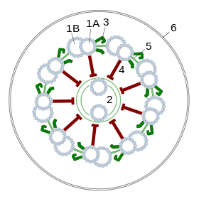 The name was coined to differentiate from the analogous structures present in prokaryotic cells. It is structurally a complex of microtubules along with motor proteins.[1][2]
