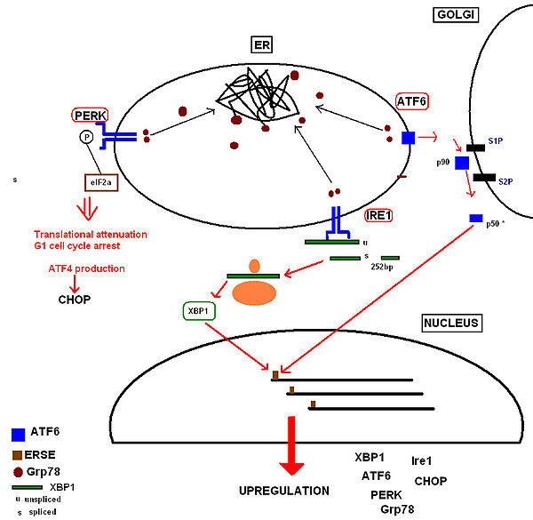 - ^ Chen X, Shen J, Prywes R (April 2002). "The luminal domain of ATF6 senses endoplasmic reticulum (ER) stress and causes translocation of ATF6 from the ER to the Golgi". The Journal of Biological Chemistry. 277 (15): 13045–52. doi:10.1074/jbc.M110636200. PMID 11821395.