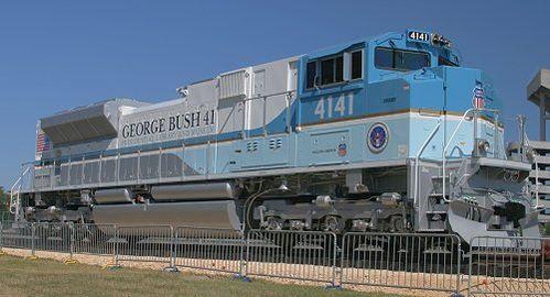 - Union Pacific 4141: An EMD SD70ACe locomotive painted to honor George H. W. Bush, the 41st President of the United States. The unit was removed from active service in 2007 and stored in North Little Rock until 2018, when it returned to power George H. W. Bush's funeral train after his death in November 2018. Following the tour, it returned to active service and continued to run until November 2019, when the Union Pacific donated it to the George H.W. Bush Presidential Library and Museum for eventual display.[21][22][23][24]