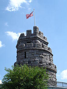 It was during the American Revolution that Union Square took center stage. Because of its location and height providing panoramic views and control of Charlestown, Somerville, and Cambridge, Prospect Hill had great strategic importance in the Revolutionary War and became known as the "Citadel".[3]:1 The castle, dedicated in 1903, is a monument commemorating the fortifications atop the hill during that war.[3]:3 A tablet inside reads: "This tablet is erected in memory of the soldiers of the Revolution and of the Civil War who encamped on Prospect Hill and of the banners under which they valiantly fought."[4]